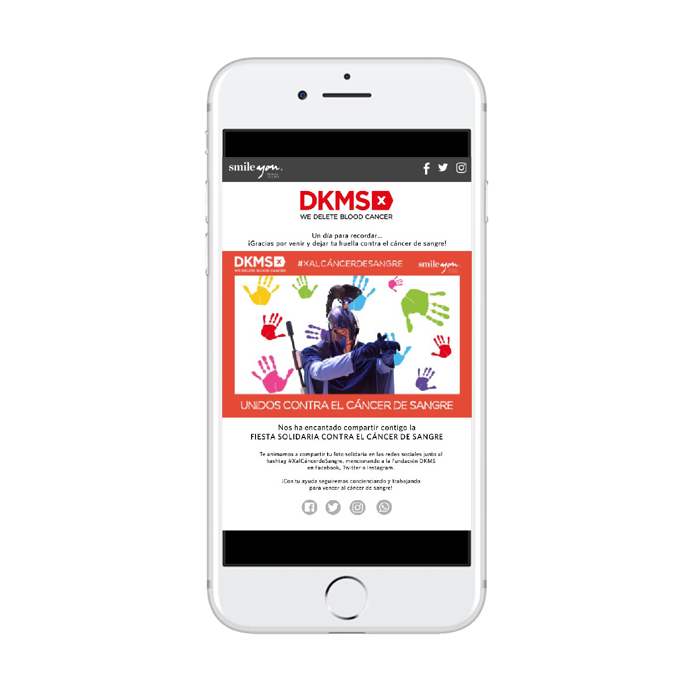 El evento contó con la colaboración de múltiples empresas y fundaciones que quisieron apoyar a DKMS en la lucha contra el cáncer de sangre: Fundación Josep Carreras, Unoentrecienmil, Fundación Aladina, Cris Contra el Cáncer, Fundación Sandra Ibarra, El Temple de Swing, Blackiblanc, Star Wars Catalunya… y Esfering. A la fiesta asistieron muchos niños y mayores que, bajo el lema «¡Deja tu huella!», pegaban sus fotos realizadas con Esfering en el mural que veis en las imágenes. El servicio contó con un chroma key de tres fondos, impresión ilimitada y envío de email con opción de compartir en sus redes sociales.